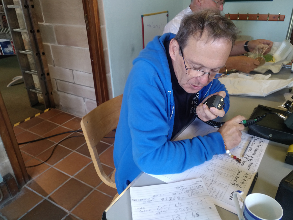 The Trio TR-9900 2m set up was located in the small annex just below the bell tower and connected to dual band collinear mounted on top of the tower giving a height of around 650 ft ASL. The Yaesu FT-450D HF setup was located in the main part of the church and connected to 20m endfeed from the top of the tower sloping downwards. Mike also set up a radio mic to broadcast the recieved audio over the main sound system within the church itself, which made it very interesting with the acoustics.